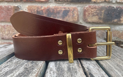 Oak buffalo plain leather belt & solid brass roller buckle, Choice of Widths