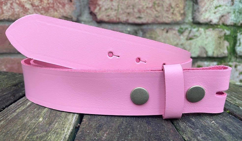 This belt is made from approx 2.4 - 2.6mm (black 2.8 - 3.0mm) thick leather cut from whole butt splits often shortened to leather splits and is a classic cut of the hide for basic belts.