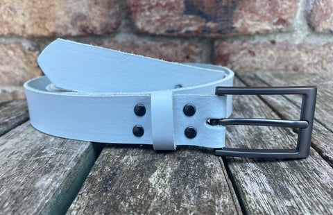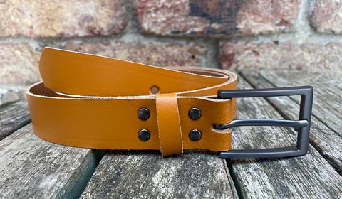 Measuring approx 1.18 inches (30mm) wide, fitted with a brushed gunmetal zinc die cast buckle and leather keeper loop. I finish these belts with a crease running along the edges, if you don't want this crease please let me know after purchase.
