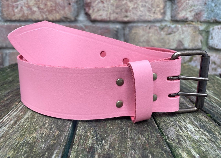 This belt is made from approx 2.4 - 2.6mm (black 2.8 - 3.0mm) thick leather cut from whole butt splits often shortened to leather splits and is a classic cut of the hide for basic belts.