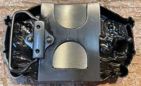 Made from zinc alloy this belt buckle will fit any press stud, snap or screw belt up to 40mm (1 1/2 inches) wide with the right buckle holes, see picture. Press stud, snap belts can be seen here.