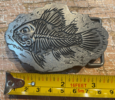 Fossilised fish metal belt buckle BK17