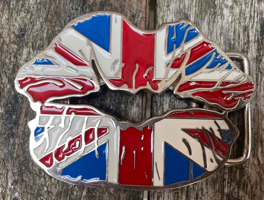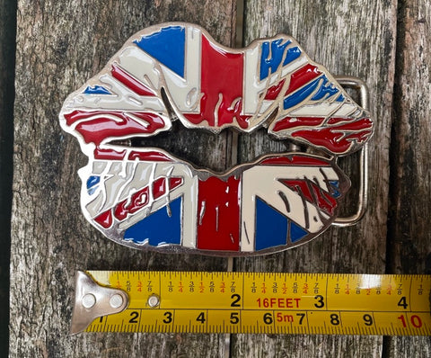 Union Jack lips metal belt buckle BK06