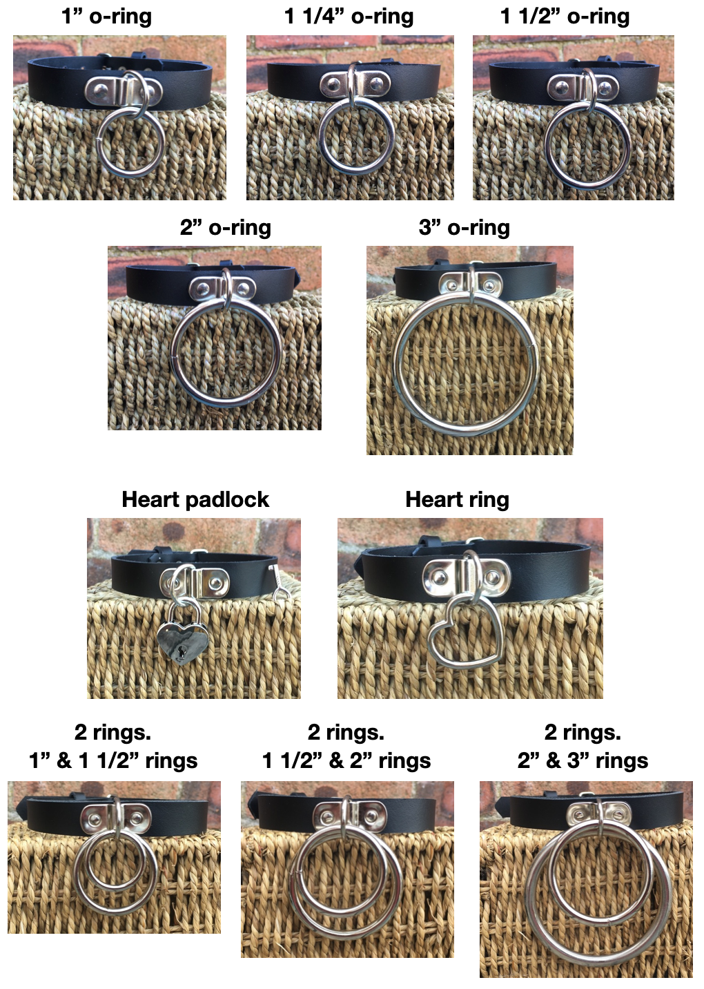 Measuring approx 19mm (3/4 inch) wide, fitted with one or two nickel plated steel o-rings at the front and fastens with a nickel plated steel roller buckle with leather keeper loop. If you would like a mix of o-rings I don't have in the drop down menu please message me as I make them all myself so it should be fine.
