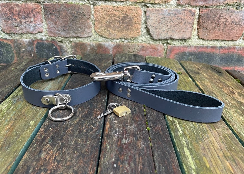 Lockable D & O-ring Leather Choker with or without leash