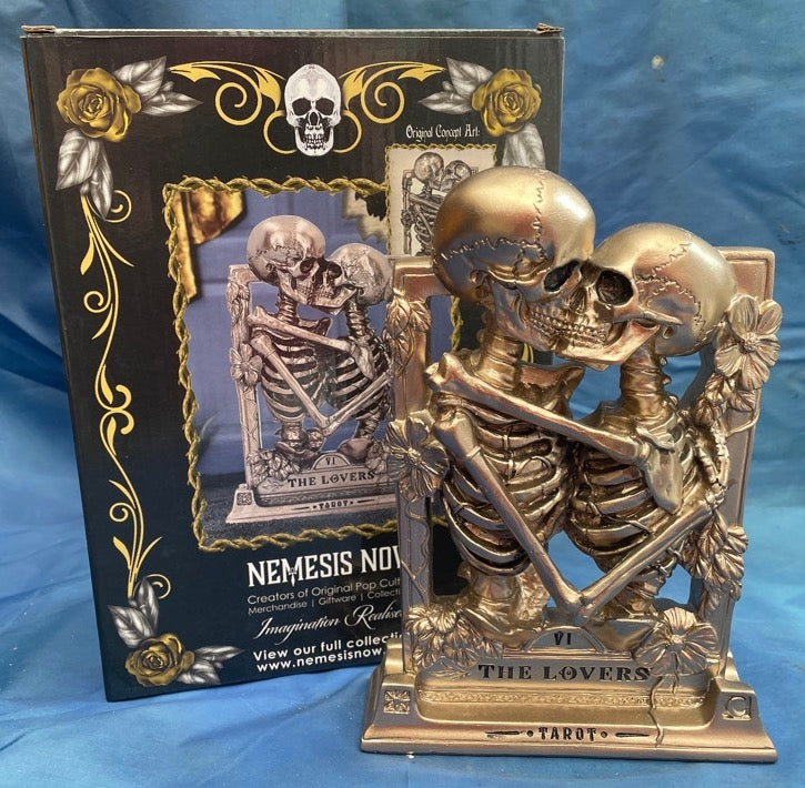 The lovers skeleton free standing ornament, figurine from Nemesis Now. Made from resin and painted.
