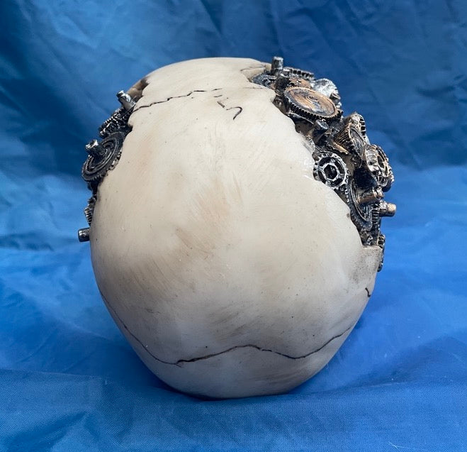 Steampunk clockwork cranium skull ornament from Nemesis Now. Made from resin and finished to give a bone like effect with some mechanical detail.