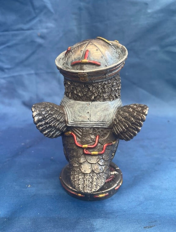 Steampunk come fly with me owl ornament part of the stunning Veronese Studio collection. This ornament is made from a solid cold cast resin and finished to give a Bronze like effect with some brass effect detail.