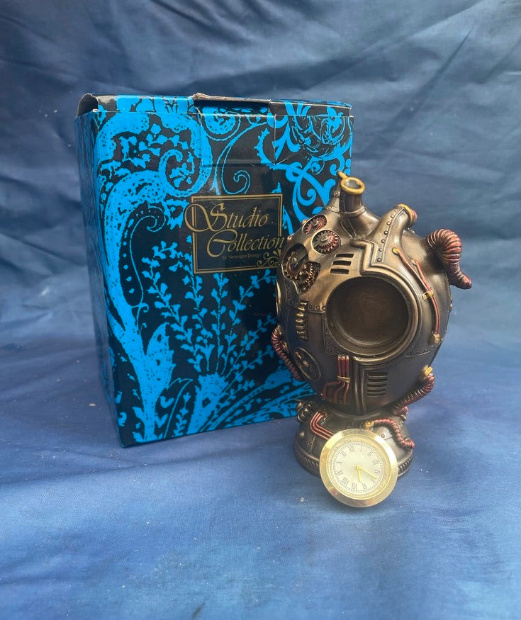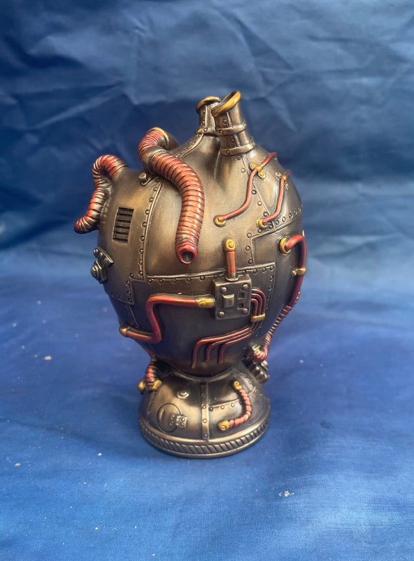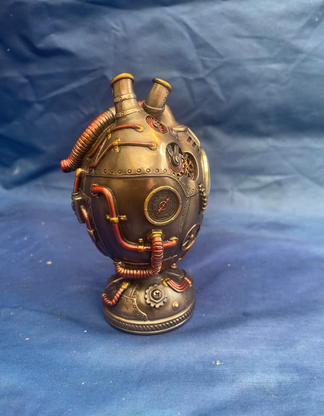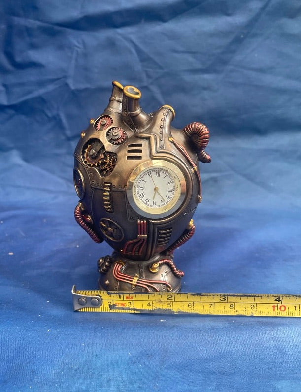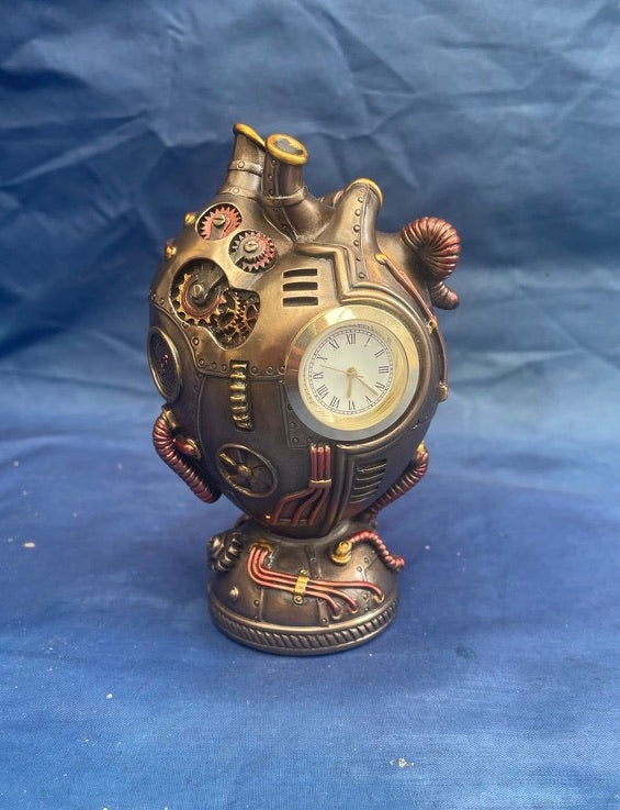 Steampunk heart beat desk clock ornament part of the stunning Veronese Studio collection. This ornament is made from a solid cold cast resin and finished to give a Bronze like effect with some brass effect detail.
