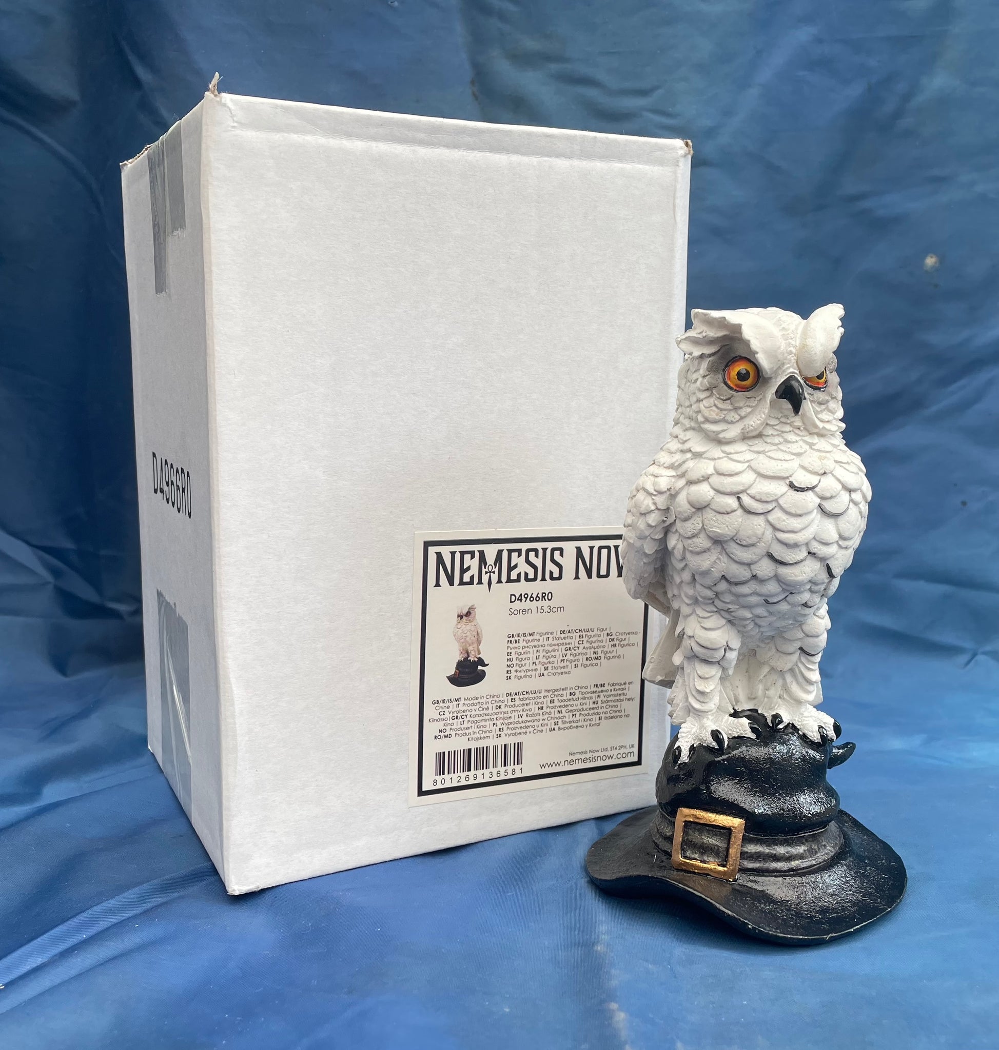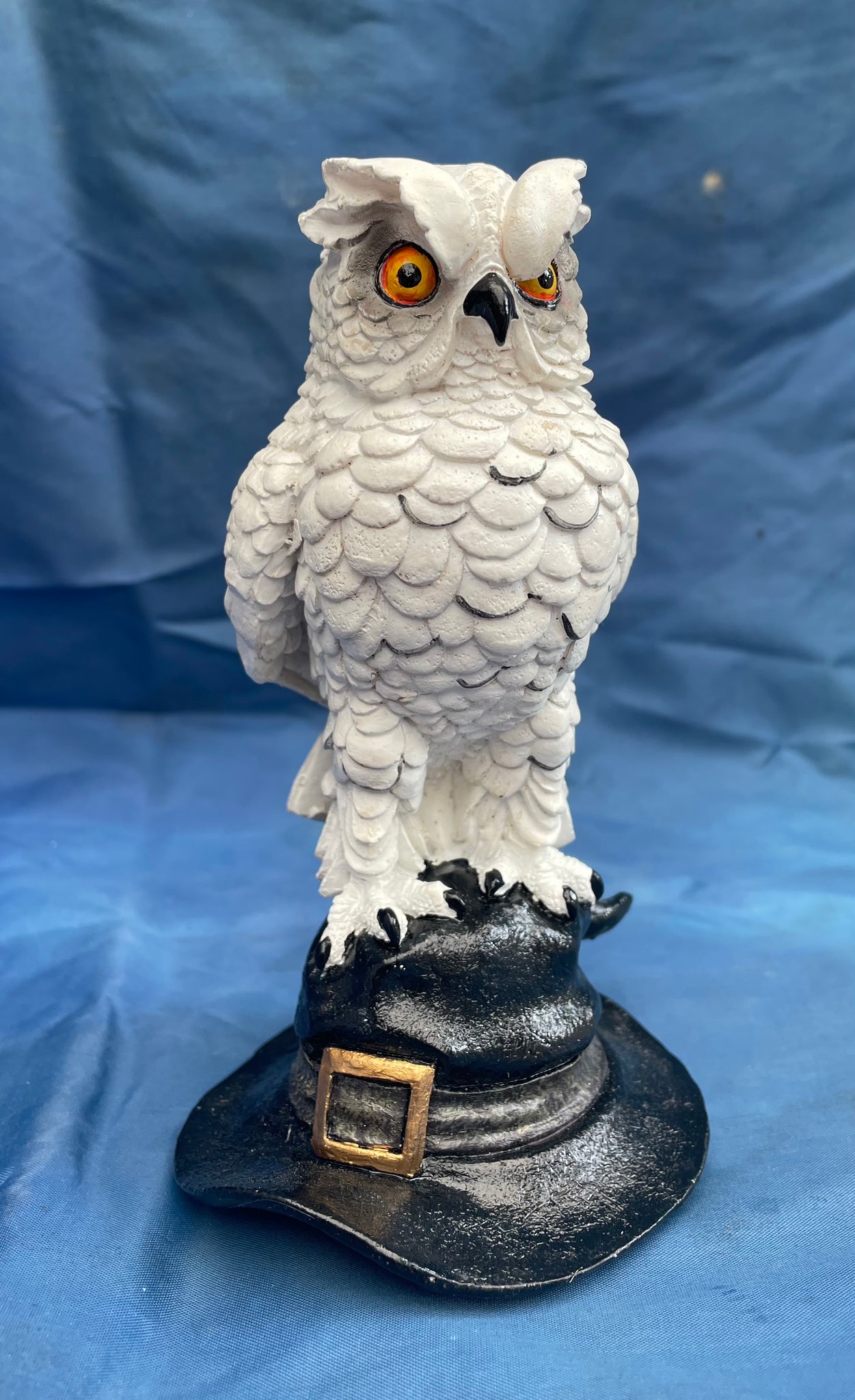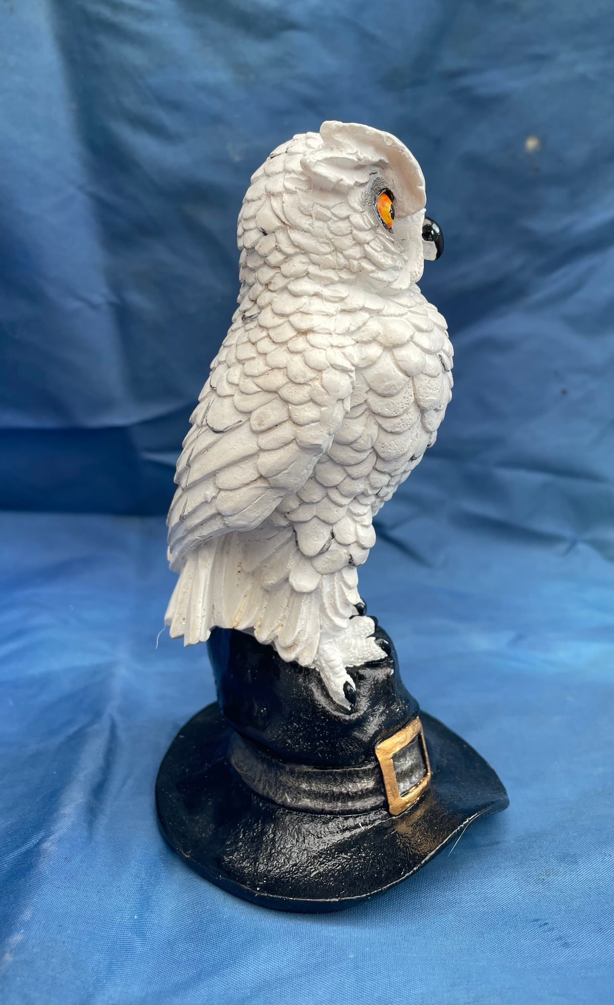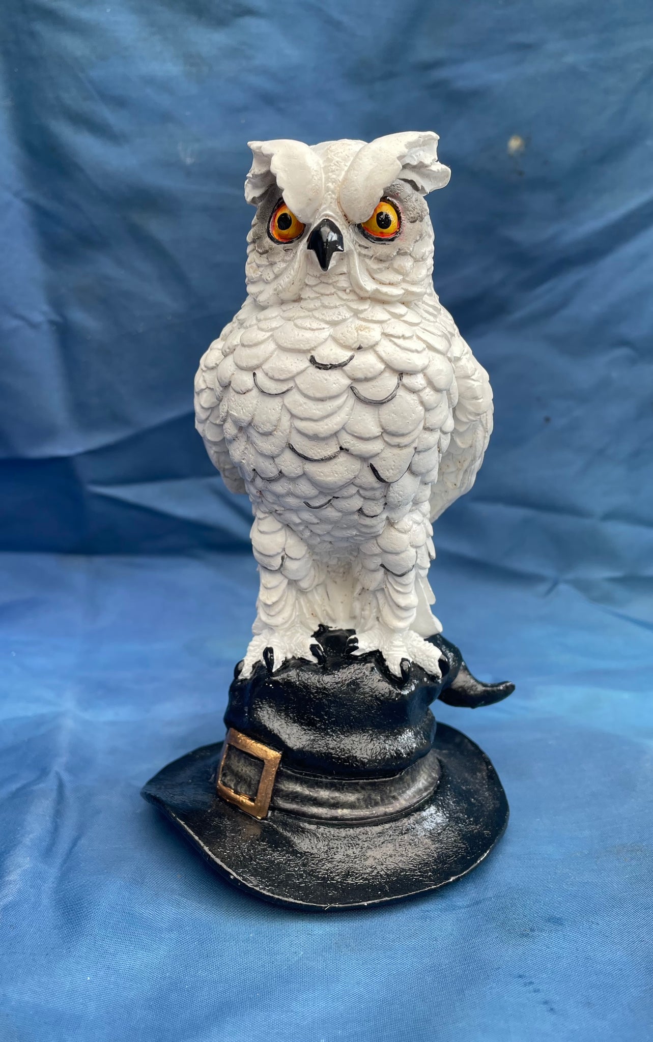 Soren owl on witches hat ornament from Nemesis Now. Made from resin and painted.