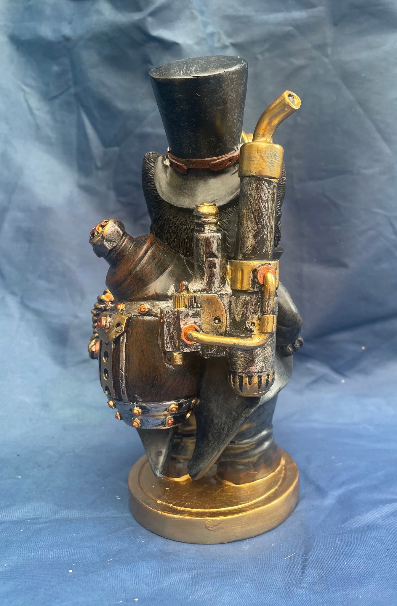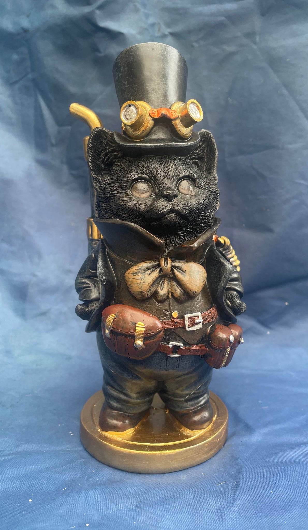 Steampunk steamsmith's cat ornament from Nemesis Now. Made from resin and finished to give a metal like effect with some mechanical look detail.